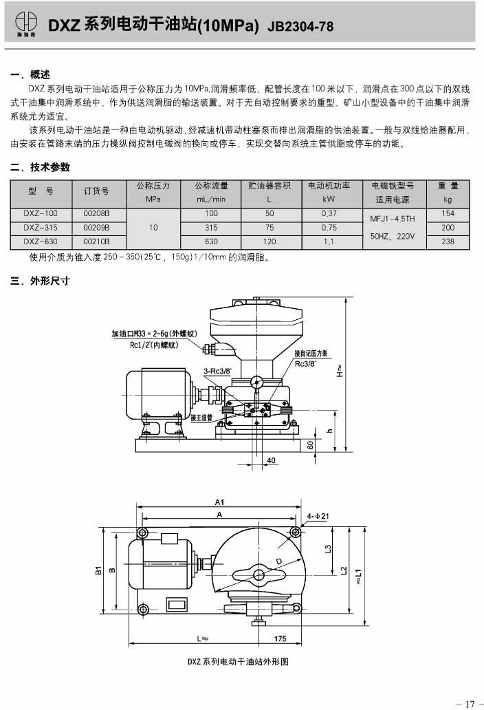 DXZ series electric dry oil station (10MPa)