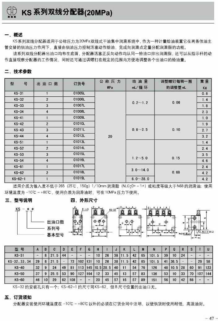 KS series double line distributor (20MPa)