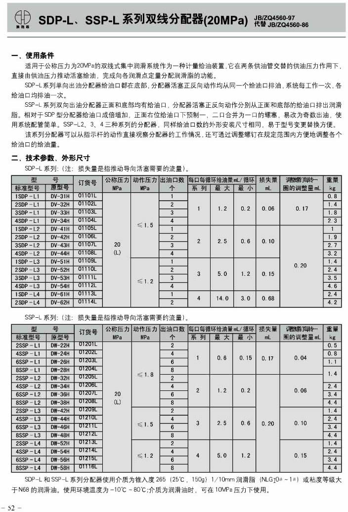 SDP-L, SSP-L series two-line distributor (20MPa)