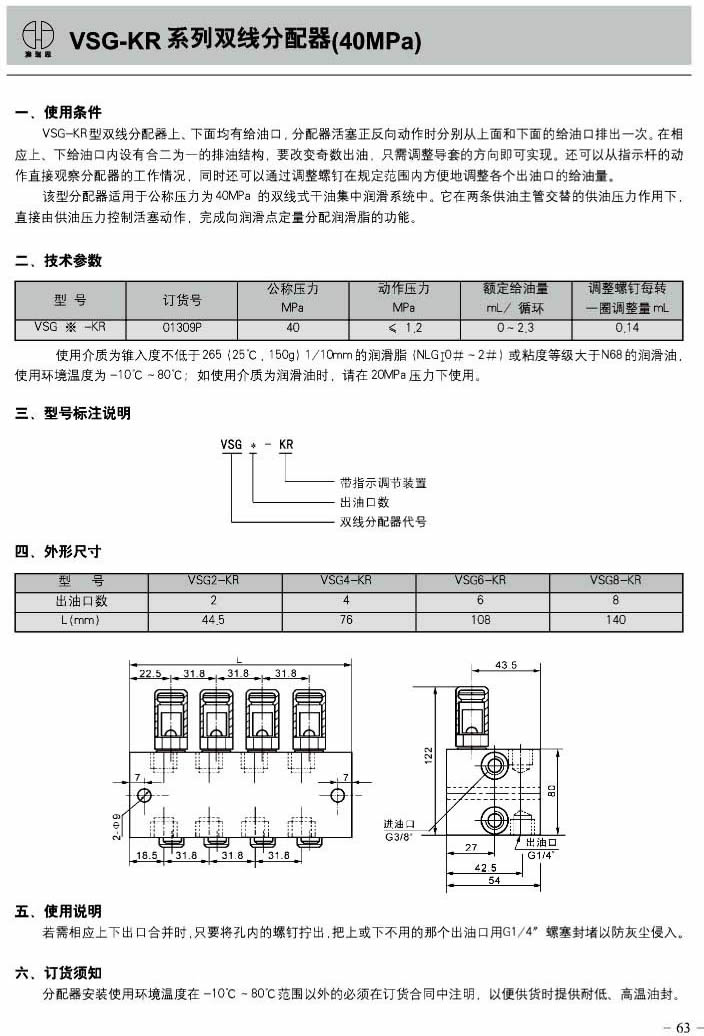 VSG-KR series two-line distributor (40MPa)