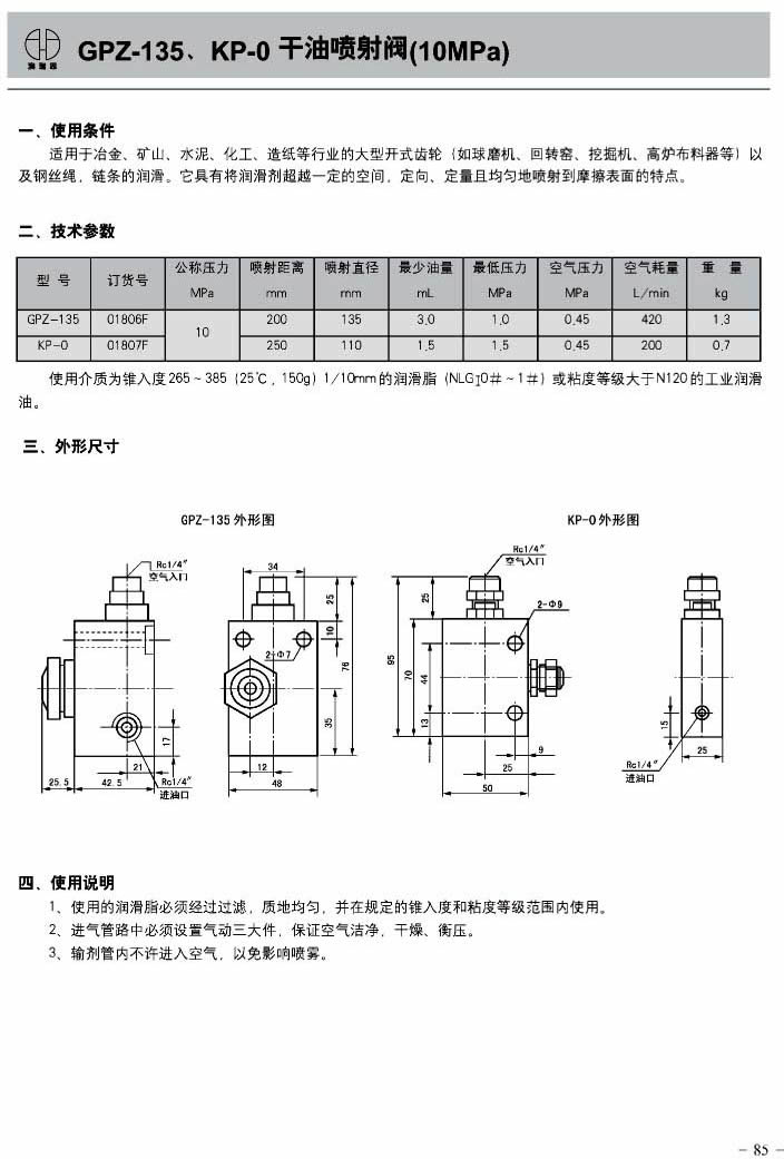 GPZ-135, KP-0 dry oil injection valve (10MPa)