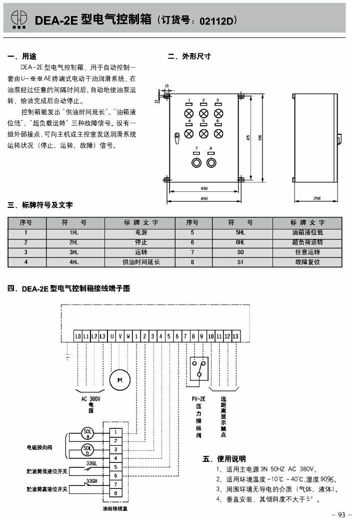DEA-2L electrical control box